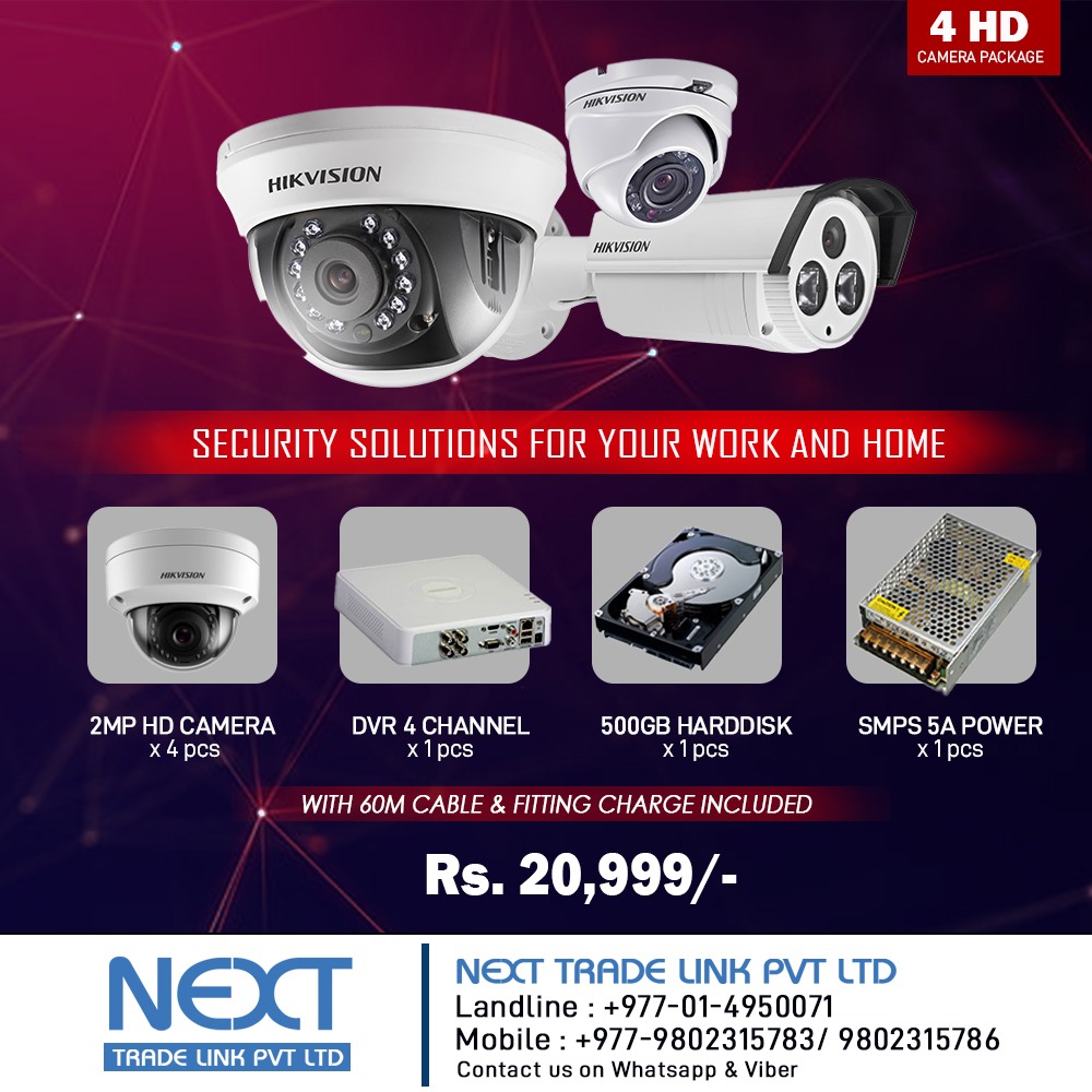 HIKVISION Camera 4 pcs HIKVISION Dvr 1 pcs Hdd 500 gb 1 pcs Cable 60mHIKVISION Power supply 1BNC 8DC 4 Three pin top 1Power cable 3mCat 6 3mClip 2 packetScrew/grip